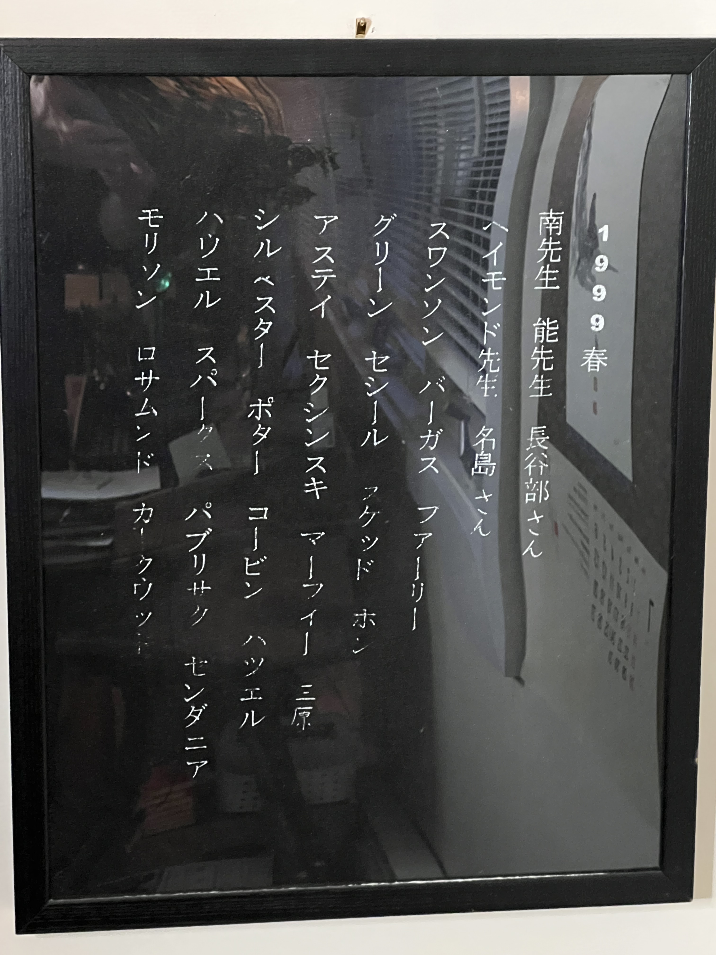 There was an associated Japanese club that I never quite got my head around. I was a member, but as an engineering student I didn’t have a lot of time for its official activities. We had shirts that someone made with our names on it, even. Mine is too old to wear, but the spring 1999 shirt is framed in my office.